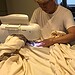 テーブルにはビールの入ったグラスが置かれていたので、昼から飲んでいることがわかった。